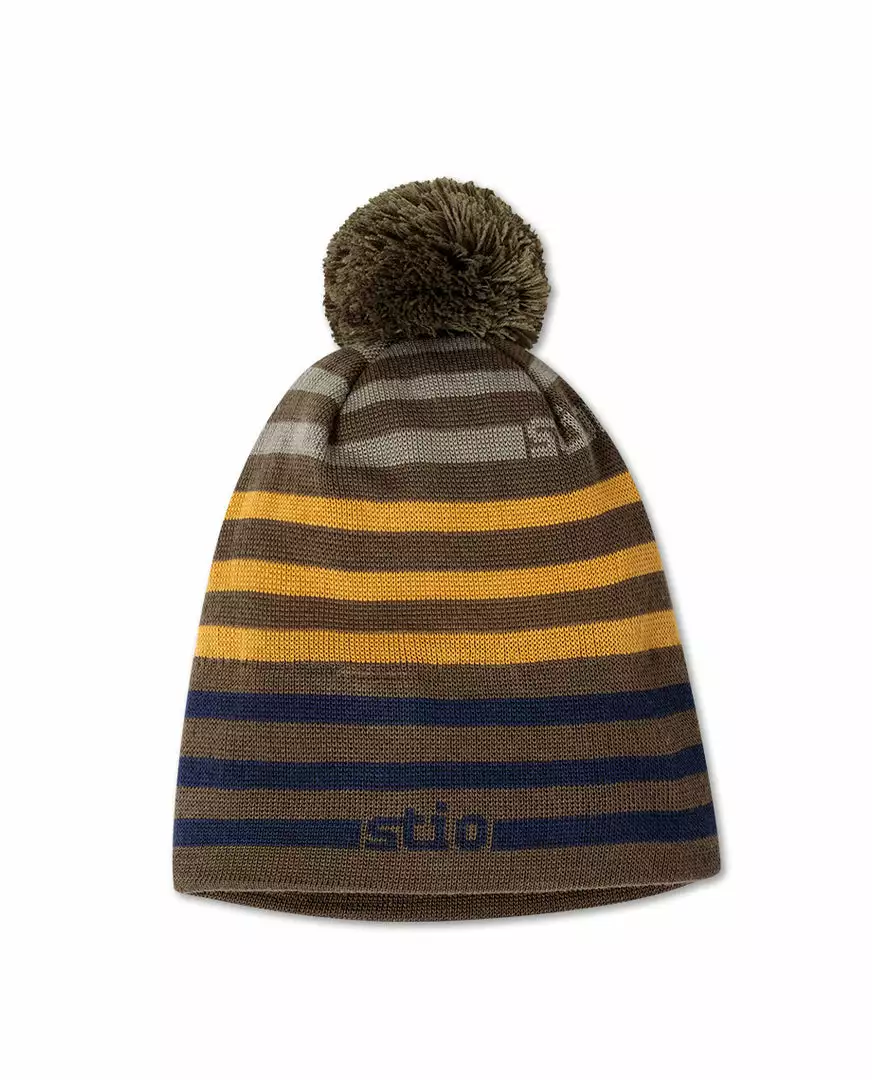 The classic throwback stripe beanie emits a timeless mule kick vibe in ski shops, tramlines and closing day gatherings.